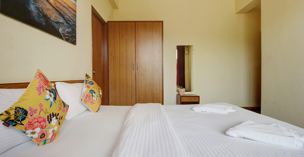 Adenium is a roomy 2-bedroom apartment situated in Emerald Isles, a secure community in the picturesque village of Canca Parra, North Goa. The apartment enjoys natural ventilation, providing plenty of sunlight and fresh air. It is modestly furnished to ensure a comfortable stay. The kitchen is fully equipped and includes a notable RO water purifier to help reduce plastic waste. Furthermore, it offers high-speed internet and a smart television, ensuring both work efficiency and uninterrupted entertainment during your staycation. An automatic washing machine is available, allowing you to travel light.