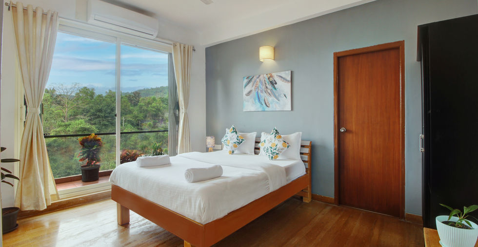 Fern is a roomy 2-bedroom apartment situated in Emerald Isles, a secure community in the picturesque village of Canca Parra, North Goa. The apartment enjoys natural ventilation, providing plenty of sunlight and fresh air. It is modestly furnished to ensure a comfortable stay. The kitchen is fully equipped and includes a notable RO water purifier to help reduce plastic waste. Furthermore, it offers high-speed internet and a smart television, ensuring both work efficiency and uninterrupted entertainment during your staycation. An automatic washing machine is available, allowing you to travel light.